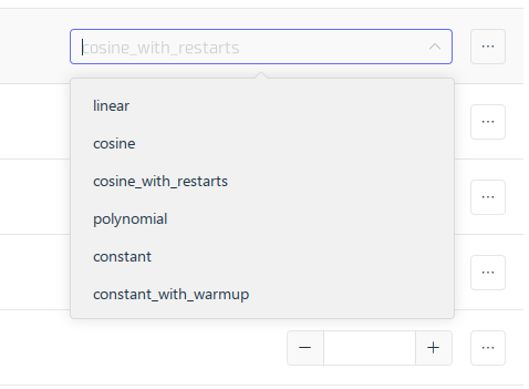 根据目前实测,cosine和cosine_with_restarts都挺不错的,可以都试一下,我觉得重启更具有功能性,对于难练的数据集可能更好用。